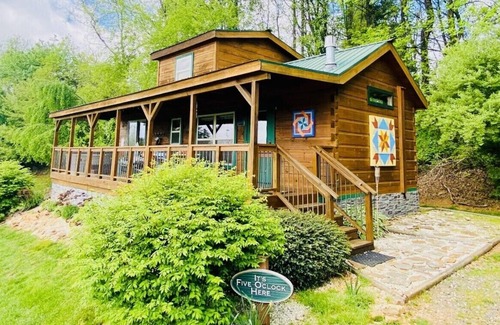 Beautiful cabin, spotlessly clean sleeps 1-5 and has a HOT TUB on the front porch, just outside the master bedroom. We are just off the Blue Ridge Parkway and our cabin is PET FRIENDLY (well-behaved dogs only!) Come stay at “It’s 5 O’Clock Here,” and enjoy the wonderful views, stocked fishing pond, fire pit with wood, free wifi/internet, the cool mountain weather, and all of the nearby activities. This cabin has all of the modern amenities. Our master bedroom features a queen-size memory foam mattress. Our loft bedroom is roomy and cozy and accessible by an interior ladder. We provide Keurig coffee maker, crockpots for easy cooking, and nice updated cookware.