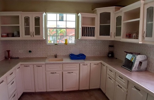 5 minutes walk from speightstown and the beach, a quiet and safe neighbourhood The apartment has air conditioning in the living/dinning rooms and fan's in the bedrooms. There are patio's at the front of the apartment and one at the back with access to a generous garden, were you can pick your own fresh fruits and veg.