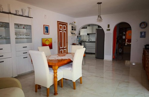 the villa and the terraces are fully furnished and equipped; spanish and german satellite tv, wifi internet, dishwasher, washing machine, infrared heating in the living-dining room, wood-burning barbecue, outdoor shower hot/cold, etc
