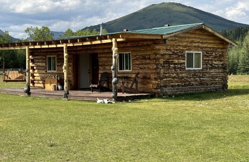 the grizzly cabin is a beautiful hand-built log building in the sikanni river valley, surrounded by the majestic canadian rocky mountains