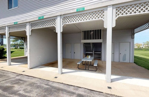 just across from the beautiful pool Overlooking the pond, facing Lake Erie, so that you can enjoy the beautiful wildlife. 30 foot boat slip, picnic table in the carport, community pool and fish cleaning station, wifi, smart TVs and Google Hub. Condo sleeps maximum of four guests..