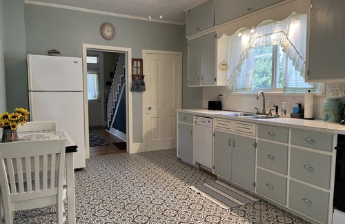 This renovated riverside Farmhouse Style 2 story home located "Where Mountains Touch Rivers" in the Laurel Highlands features 3 Bedrooms and 2 Bathrooms, a Well-Equipped Kitchen, Formal Dining Room, Large Living Room, and Laundry. Outside is a Patio, Fire Pit, BBQ, a covered Front Porch, three Rivers, and Youghiogheny Lake. The home is surrounded by bike trails, hiking, and water sports. Key amenities are near the town square within walking distance, just across the Casselman foot bridge. Bedrooms are still under renovation, but will be ready soon, with Pics! (1 Queen, 1 Full, 2 Twin Beds).