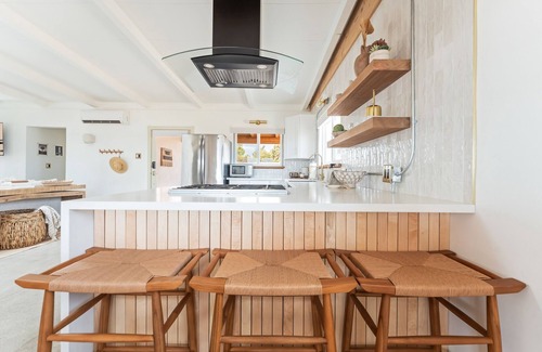 Welcome to our stunning vacation home nestled in the heart of Joshua Tree! This beautiful desert oasis is the perfect retreat for those seeking a unique and tranquil getaway. Upon arrival, you'll be greeted by the breathtaking panoramic views of the surrounding hi-desert landscape. This home boasts a modern and minimalist design with large windows that provide ample natural light and allow you to fully immerse yourself in the stunning natural beauty of Joshua Tree. This private modern pool and hot tub with large covered outdoor patio and kitchen are the perfect amenity for this luxury home and property.