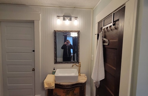 This cozy, well decorated, ground level suite in the downtown historic emerywood neighborhood offers many amenities with parking just a few steps from the front door. Close to downtown, 1 block to the hospital, High Point Medical Center, 3 mins to Rocker Stadium & Center. The en-suite offers a well equipped kitchenette & bathrm along with a cush queen sized bed & 50 inch TV. Guests have sole use of the front porch entryway w/comfortable wicker chairs and cafe table. We have affordable rates!.