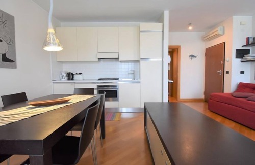 Modern, comfortable apartment block. In the district La Giudecca, in a sunny position, excellent location: right in the centre but still quiet, 50 m from the sea, 50 m from the canal, direct access to the lagoon. In the house: lift, air conditioning, washing machine, heating available only from 15.Oct. - 15.Apr.. Shop 400 m, supermarket 200 m, restaurant 400 m, bar, café 100 m, bus stop "Piazzale Roma" 2.5 km, railway station "Santa Lucia" 2.5 km, ferry "Vaporetto stop Palanca" 400 m. Nearby attractions: Piazza San Marco 1.9 km.