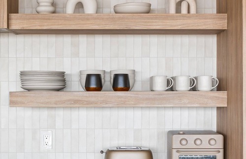 the property was designed to entertain with resort-style amenities and features A 40-foot sliding glass door opens up completely to the outdoor area, where you'll enjoy a pickleball court, hot tub, built-in firepit, outdoor shower, and native landscaping including a Joshua Tree. The infinity pool is a focal point of the property, outfitted with in-pool chaise loungers and moody lighting that transforms the space at night. When you aren't lounging at the property, you'll have the wonders of Joshua Tree National Park minutes away, along with all of the area's bars, boutiques, and restaurants nearby.