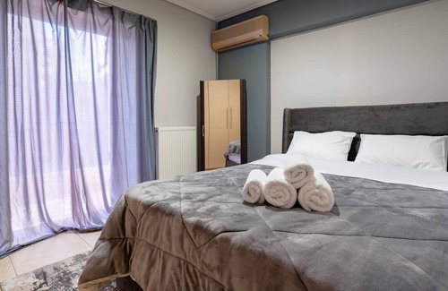 Bright , newly built spacious apartment , which includes spa bath , fully kitchen , big living room anatomical mattress and home cinema , within walking distance of the Kalithea train station..