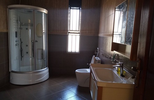 This is a 6 bedroom villa with spacious parking , gardens with a secure neighborhoods . it is utmost 5km from the central business area of Kampala, The restaurants and shopping mall are just a few meters away.