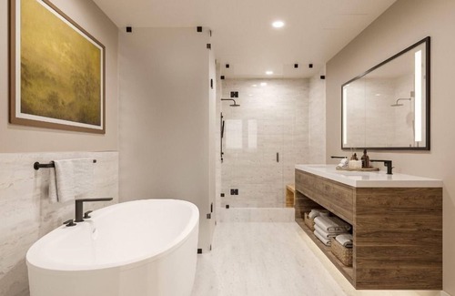 • bathroom 1: double vanity, soaking tub or walk-in shower, premium towels