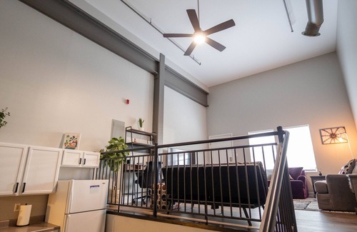 CENTERED DOWNTOWN MAIN ST! Situated in the Arts and Market District of downtown Lafayette, this 1 bedroom, 1 bath, unique, modern apartment is newly renovated and hosts an open concept with extremely high ceilings and a beautiful accent wall. Apartment is located directly in the Heart of Downtown Lafayette, just minutes from Chauncey Village District on Purdue University's campus, Ross-Ade Stadium, and Mackey Arena. This is truly a prime location for a Lafayette, IN/Purdue University visit..