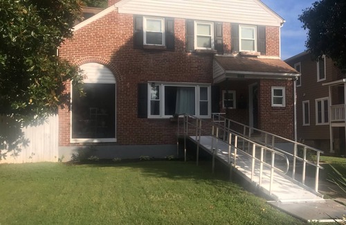 Queen sized master suite accessible on the first floor with full bath. 3 additional bedrooms: King, Full and Futon on upper level. Modern features with comfortable living spaces to make your stay relaxing. Close to Pimlico Racetrack and 15 minutes from the Inner Harbor. Large backyard with tons space for that family BBQ. Home has a wheelchair ramp to help with accessibility. Booking includes 2nd and 3rd floor of home. This house perfectly accommodates a big family for a weekend retreat..