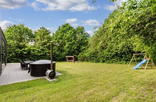 Holiday village, built in 2022. 3 km from the sea. Private: natural state property 875 m2. Barbecue. In the house: washing machine, tumble dryer. Parking at the house. E-charging station. Grocery 1 km. Golf course 2.5 km. The owner does not accept any youth groups.