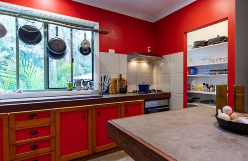 the kitchen is fully equipped with an overflowing pantry of spices, oils and herbs Three fridges and large chest freezer. Sound system in-house and on deck. Two I push bikes, surfboards, gym, office space, large gardens and chickens laying fresh eggs. 350m to the beach!