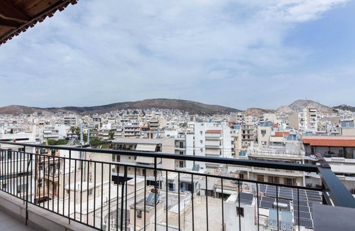 welcome to the koridallos 3 bd terrace apt with spectacular views! this charming apartment offers an unforgettable stay with breathtaking views of athens from its 8th-floor terrace Perfectly suited for up to 6 guests, it features 3 cozy bedrooms, each with a double bed, and is equipped with modern amenities to ensure a comfortable and convenient stay. Ideal for families, groups of friends, or business travelers, this centrally located apartment is just 2 minutes from the metro of Koridallos.