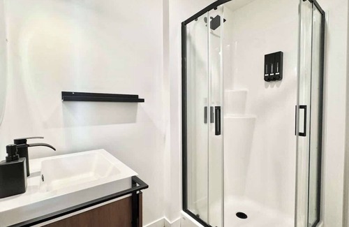 located in a new building in the heart of downtown lévis, this small, modern, hotel-style studio is perfect for a comfortable stay It includes a small refrigerator with freezer, a microwave, and a coffee area for your gourmet breaks. ideal for a convenient and cozy getaway, close to all amenities!