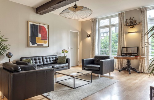 nestled in a pedestrian street, just a stone's throw from the legendary rouen cathedral, our prestigious flat invites you to immerse yourself in history, enhanced by absolute comfort