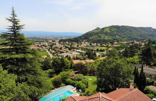 the accommodation is quietly located in a house, on a large green plot with a large and beautiful swimming pool, in the heights of saint-peray, with a magnificent view of the vercors and the essential château de crussol