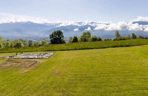 Access to the property via a narrow municipal road for 6.5 km then a stone-paved driveway, parking on the property (2 spaces). Gîte on the 1st floor of a renovated old barn (access via an internal stone staircase) where the farm workshop is located: Living room-kitchen with large covered terrace (35 m2) on the same level as the living room, 2 bedrooms (1 double bed 160x200 cm / 2 single bunk beds 90x190 cm), bathroom (shower), toilet, laundry room. Large unfenced grounds available. Perched high above the Combe de Savoie, Envol Safrané takes its name from two of the area's distinctive features: Frédéric's saffron-growing farm and the nearby paragliding launch pad. From the gîte's vast, sheltered terrace, enjoy incredible views of the valley and the Belledonne massif, located in a peaceful hamlet with no through traffic..