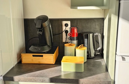 the kitchen is equipped with an oven, a stovetop, and a refrigerator, as well as a coffee maker, an electric kettle, and a lobster pot Connect to the free WiFi, or get cozy in front of the Smart TV. Bathroom amenities include a hair dryer, towels, and toilet paper. And thanks to the washer and dryer, you'll even be able to travel light. Other amenities at this 1-bedroom, 1-bathroom rental include bed sheets, an ironing board, heating, and a dining table.
