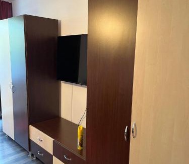 Featuring a casino, LA ALIS SI RAISA! Apartament cu 2 camere! features accommodations in Lupeni. This property offers access to a balcony, free private parking, and free Wifi. The accommodation provides a shared kitchen, full-day security, and currency exchange for guests. Providing a terrace and city views, the apartment includes 2 bedrooms, a living room, flat-screen TV, an equipped kitchen, and 1 bathroom with a bidet and a shower. Towels and bed linen are provided in the apartment. At the apartment, there's a dressing room for guests to change in. There is a coffee shop, and packed lunches are also available. Both a bicycle rental service and a car rental service are available at LA ALIS SI RAISA! Apartament cu 2 camere!, while skiing and cycling can be enjoyed nearby. Craiova International Airport is 103 miles away, and the property offers a paid airport shuttle service..