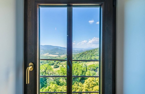 "la casa di emilio i", 3-room apartment 100 m2 on 2 levels on 2nd floor Spacious, renovated in 2024, beautiful and modern furnishings: 2nd upper floor: living/sleeping room with 1 double sofabed. Kitchenette (2 ceramic glass hob hotplates, kettle). 3nd upper floor: (spiral staircase), 1 room with 1 double bed (180 cm, length 200 cm). (spiral staircase), 1 room with 1 french bed (140 cm). Shower/WC. Heating. Sitting area. Side panoramic view of the countryside. Facilities: iron, hair dryer. Internet (WiFi, free). Maximum 1 pet/ dog allowed. it050021c2hohan4ao