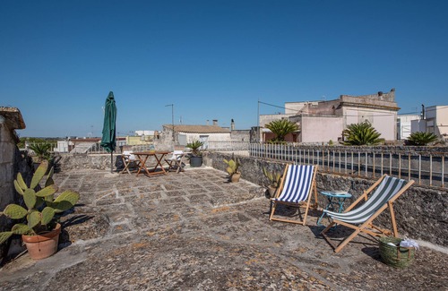 the real gem is the private terrace, perfect for sunbathing on the loungers or sipping a glass of wine at sunset, immersed in the warm colors of the salento sky