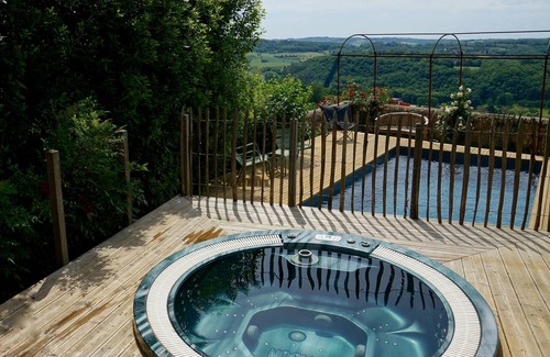 Large air-conditioned house, garden, jacuzzi and swimming pool, in Domme.Located above the ramparts, the three wings of this beautiful village house opening onto a large flowered and shaded garden, offer an idyllic setting for stays full of charm and relaxation.