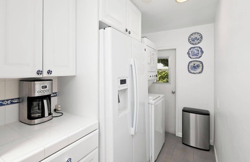 the la jolla shores cape cod has a quiet and private courtyard/patio area, which is ideal for barbeques, outdoor dining and entertaining There is a gas barbeque in the courtyard with all cooking utensils provided and an outdoor dining area with seating for six. A full size washer and dryer are located in the home for your convenience. Off street parking for 1-2 cars is provided in an enclosed gated driveway. Please inquire about detailed parking if two spaces are needed.