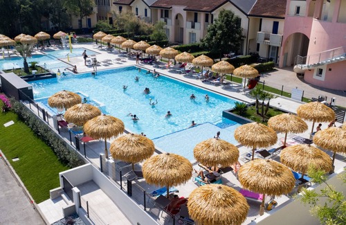 Child friendly resort "La Quercia", 3 storeys. 56 houses in the resort. 29 apartments in the residence. In the district of Caorle-Lido Altanea 5 km from the centre of Caorle, 60 km from the centre of Venezia, 115 km from the centre of Trieste, 700 m from the sea, 700 m from the beach. For shared use: swimming pool (19 x 14 m2, seasonal availability: 15.May. - 15.Sep.). Children's pool, tennis (1 x hard court), floodlit (extra), table tennis, basketball, volleyball, badminton (extra). In the complex: WiFi, shopping facilities, boutique, washing machine (for shared use, extra). Parking at the house, public parking on the road. Supermarket, restaurant 400 m, bus stop 350 m, railway station "San Donà di Piave" 28 km. Golf course (18 hole) 800 m. Please note: entertainment in the season. Suitable for families.