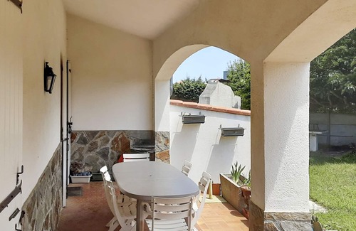 Pollestres 15 km from St Cyprien: Villa "La Salamandre", surrounded by trees. On the outskirts, 500 m from the centre of Pollestres, in a quiet position in the residential district, 15 km from the sea, 15 km from the beach. Private: property 2'000 m2 (fenced), large garden. Terrace (40 m2), garden furniture, barbecue. Grocery 1.4 km, supermarket 1.4 km, shopping centre 1.4 km, bakery 500 m, bus stop 750 m, railway station "de Perpignan" 5 km, sandy beach "St. Cyprien" 15 km, bathing lake "Villeneuve de la Raho" 6 km. Sports harbour 15 km, golf course (18 hole) 15 km, riding stable 5 km. Nearby attractions: Perpignan 8 km, Collioure 32 km, Banyuls 40 m, Carcassonne 122 km, Espagne - Barcelone 188 km, Andorre 176 m. Well-known lakes can easily be reached: Lac de Villeneuve de la Raho 6 km, Lac de St Jean Pla de Corts 19 km. Hiking paths: St Martin du Canigou 65 km, Pic du Canigou 72 km, Lac des Bouillouses 100 km.
