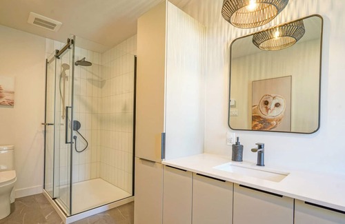 as you settle into this 4-bedroom, 25-bathroom rental, you'll find a living room, a dining area, a BBQ grill, and air conditioning. Bathroom amenities include a hair dryer, towels, and toilet paper. Prepare a home-cooked meal in the kitchen, complete with an oven, a stovetop, and a refrigerator, as well as a coffee maker, an electric kettle, and an ice maker. And you won't have to pack extra clothes, because you'll have a washer and dryer, too.