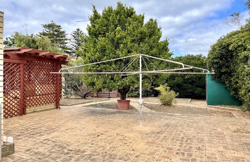 step outside onto the spacious deck, where you can soak up the south australian sun or fire up the barbecue for a laid-back cookout The fenced backyard offers privacy and a lush setting for relaxing amidst nature.
