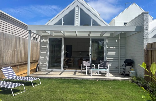 Have fun with the whole family or your friends in our beautiful brand-new Stylish yet functional Coastal home nestled among the gum trees. A short walk to the main strip of amazing restaurants and shops, and a 3 minute drive to Ocean Grove main beach for surfing, sun baking, long walks or summer cricket. There's a beautiful north facing garden with deck ready for afternoon barbecues after your hot outdoor shower on the way in. The perfect set up for your relaxing holiday.