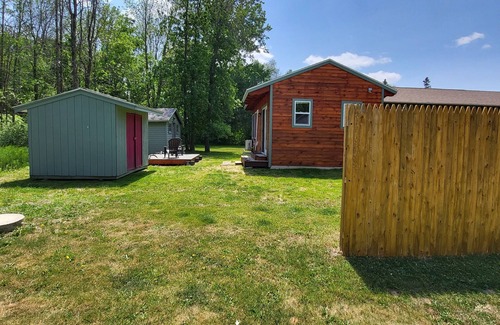 Enjoy your vacation days in this sweet comfortable brand new one room tiny house! Set back from the lake with lots of privacy, you have access to Lake Champlain via a beautiful private park with a beach within 5 minutes easy walking distance! The tiny house is attached in the back to the main cottge with a separate entrance. this back location provides nice privacy with your own private deck! beautifully designed, airy with vaulted ceiling featuring cherry beams! it has a full kitchen, bath and fantastic easy to use comfortable murphy bed!