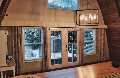 Our stylish 2-level cabin in Hope, with striking interior curved-wood walls, features tantalizing mountain views, a private backyard creek and hot tub. A cozy 2 bedroom A-frame near beaches, parks, the main town, and walking distance from the fishing and swimming paradise of Kawkawa Lake.