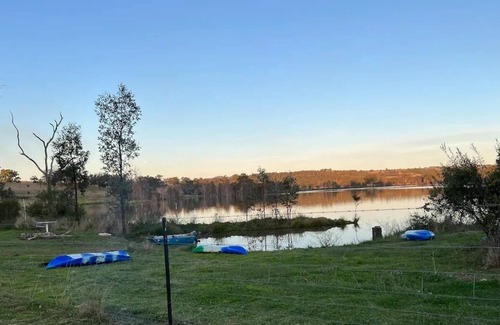 Lake Glenlyon Swim, fish, kayak or just relax. Our 1978 Leyland Leopard Bus Kermit is located 20m from the waters edge on Glenlyon Dam. Kermit has the most comfortable Queen Bed with views straight onto the water. A large kitchen will keep the cook happy or cook outside on the campfire. Toilet (flushing) and Shower (gas hot water) are located outside of the bus. Explore our 150 acre farm with rare breed sheep, cattle, pigs, goats. Emu, Swans, Pelicans, Deer & White Wallabies may be seen.