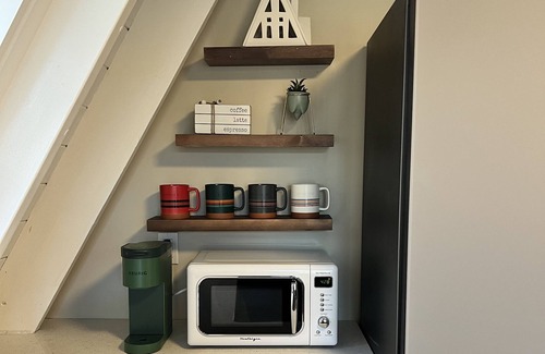 ★ although beautiful, the staircase at the cabin is a narrow (see photo in our listing) and is the only way to get to the upper level We know that some people may find them difficult to climb and come down from, particularly older guests who struggle with stairs. It may also be difficult to carry large bags/suitcases up the staircase so you may want to plan to have a smaller bag ready to bring up. The upstairs has a queen bedroom and a loft area overlooking the lake with cozy chairs and books.