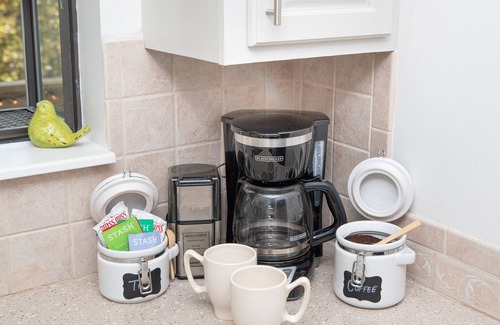 modern appliances, a handy dishwasher, a drip and keurig coffeemaker, and gleaming corian countertops provide everything you need to create a delicious breakfast once your meal is ready, gather around the elegant dining table and enjoy your breakfast while gazing through the large