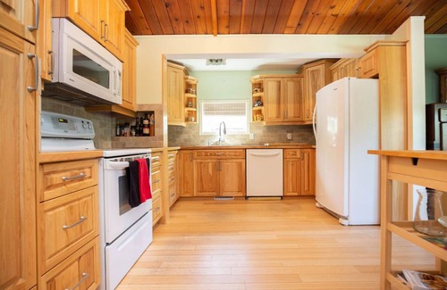 wake up to sound of birdsong Watch the pelicans fly overhead. Spot the eagles lazily circling in the sky. Swim or enjoy the sun at the nearby beach. Take a walk or bike ride on the many paths in the area. Cook supper on the patio BBQ and eat outside. Gather round the bonfire in the backyard fire pit. Lots of space to relax inside in the evenings or on a rainy day..