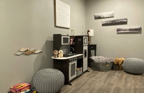 the entertainment spaces are even better! it is directly on the lakefront with a beach and dock with great fishing, beaching, and boating It is situated on snowmobile and ATV trails - always ready for a wild ride. Over a thousand acres of public hunting land is right around the corner. And, the ice age trail is waiting for you to hike it! It offers a game room with billiards, foos ball, darts, Big Buck Hunter, and multiplayer arcade, and you can kick back and cheer for your favorite team in a great bar with ample seating, three tv's, and room to hook up your own tap. there is even a toddler corner with toys for the smallest guest!