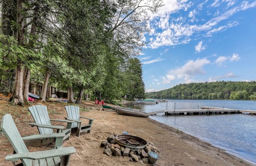 with access to a vast, 40-foot dock (with a 34-foot tee), you're welcome to use the home's rowboat, kayaks, or canoe to explore the lake Relax on the private, sandy, level beach, perfect for sunbathing or playing with the kids. Or pull up an Adirondack chair along the waterfront and just watch the boats go by.