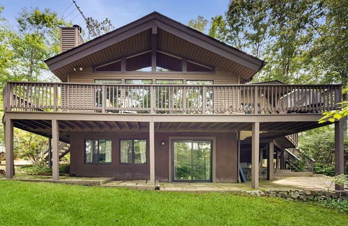 welcome to hideaway haven, where lakefront serenity meets wooded charm! nestled among the trees, our home offers stunning lake views from every angle—whether you're relaxing on the wraparound deck, enjoying the patio, soaking up sunlight through the expansive windows, or unwinding in the cozy three-season room