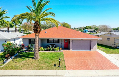 Come enjoy your perfect hideaway in conveniently located Port Richey. Relax in your private heated pool, or go fishing and kayaking right in your back yard. Centrally located it is a short distance to the activities of Tampa and Clearwater Beach to the south and Crystal River to the North. The house has two private bedrooms with queen beds, plus a third bedroom room with two twins and full laundry. All rooms have TV’s. Enjoy the BBQ, gas fire pit, two kayaks and beach accessories are provided..