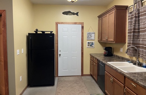 2 bedroom plus a commons area with a sofa sectional that can be converted to a sleeping area and a full bath with shower stall upstairs. The down stairs includes a living room with a power recliner , leather couch that has a queen transformer bed which or rated for daily usage, full kitchen including a dishwasher, above stove microwave and coffee maker pots, pans utensils, plates , glasses , bowls ect and a 1/2 bath with a washer and dryer just off the kitchen in the utility room. The down stairs also has in slab heating for the chilly/cold days and a wood burning stove to get everything toasty and added ambiance. Outside has enough parking for 2 vehicles with trailers or 4 full size trucks. No vehicles are not on beyond the house or allowed on the concrete patio, this includes atv’s, snowmobiles, dirt bikes and utv’s. This is a kid friendly place. The amenities 4 kayaks, 2 paddle boards, a pier, ninja line, tree swing and an acre of tranquility throughout the year.This property is on a class A Muskie chain of 5 Lakes and has decent pan fishing off of the pier in spring through fall months, there is always a chance of hooking up with a Muskie or Northern.. This property also sits about 100 yards from a boat launch (patronage at Birchwood is appreciated). We are located on ATV and UTV trails (mainly asphalt) but dirt trails are a short drive away. The property is also on the snowmobile trails, just pull out of the driveway, take a left or right and you are on the trails. Unlike most lakes, Third lake doesn't require a boat lift, it doesn't get rough enough to need a lift, but that is my opinion. Simply throw your boat bumpers out and tie off to the pier.