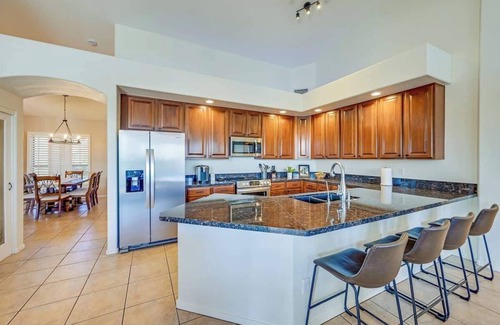 relax at our lakefront vacation home, a serene backyard oasis with a heated pool (optional), bbq grill, and outdoor space for family fun Enjoy kid-friendly touches like books and toys, plus a fully equipped kitchen with coffee/espresso maker. pet-friendly with secure parking, and ocotillo’s world-class golf is just down the street, your perfect arizona getaway awaits! ⛳