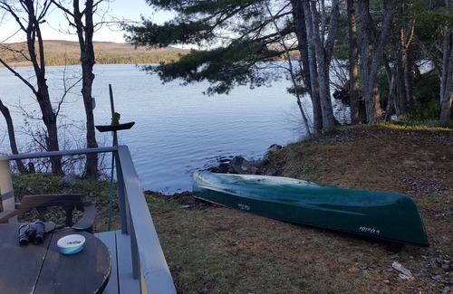 Wake to the call of the loons and drink your coffee on the deck just steps from the shores of Davis Pond. Although its name says 'pond', Davis is actually a beautiful 500-acre lake. Enjoy a private setting with two acres, removed from neighbors, and spend days swimming, fishing, kayaking, canoeing, paddle boating, or simply reading on the lawn. The open deck provides guests options for sunbathing, star-gazing or relaxing and enjoying the view. The fire pit is great for end-of-the-day campfires and firewood is provided! This property has games and all the kitchen supplies you need. There is a charcoal grill for cooking. There are two kayaks, a canoe, and a paddle boat provided with life jackets. Only 15 minutes from Bangor, it’s easy to everything from ethnic food to an independent book store or the mall. Under an hour from Bar Harbor, Acadia National Park and the activities of the coast, making this popular destination an easy day trip. A small bunkhouse with a bunkbed is available for an extra fee..