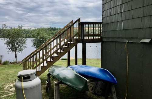 beautiful home on picturesque road which abuts the lake Hear loon call all the day and owls most night. Billions of stars on a clear night. Home is in the country yet 15 minutes from lots of shopping and restaurants. We’re centrally located to all things Maine. Home is right on your way to Acadia which is 2 hour East. Also 2 hours from White Mountains, 1hour from the ocean, 1 hour Freeport & LLBean.