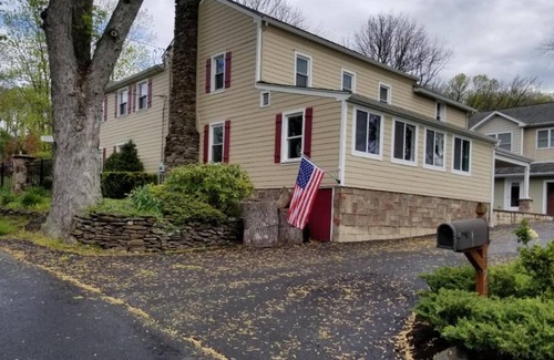 Historic farmhouse Chalfont Pennsylvania with a gourmet kitchen , full walk in pantry , custom wine room , full bar pub room with smart tv and lake views, A huge family room with woodburning fireplace and large sectional comfy couch with large tv, full dining room with large wood table and leather oversize chairs and wood burning fireplace , upstairs has three bedrooms and master with skylights and tons of space with full walk in closets and master bath suite with dual shower head walk in shower , laundry off master with back deck entrance, entire home has hardwood floors throughout , this farmhouse is completely remodeled and faces lake galena and peace valley park. The home has wrap around patios and a hot tub with large fire pit and patio . There is Peace Valley Lavendar farm two doors down and close to New Hope, Peddlers village in Lahaska, just a short drive to Phildelphia and only minutes from Doylestown. There are many wineries to visit the closest to the property are Bishops winery just 5 mins away!.