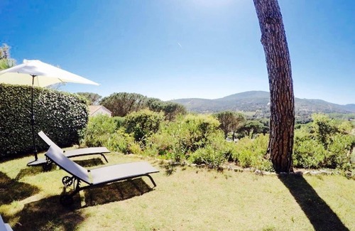 Beautiful apartment on the ground floor with an area of 45m2 (find the apartment on www. vacances83.com) superb view of the Massif des Maures, fully repainted with new furniture, unlimited internet connection, air conditioning in 2 rooms, private parking space, swimming pool in the residence..bref comfort guaranteed!