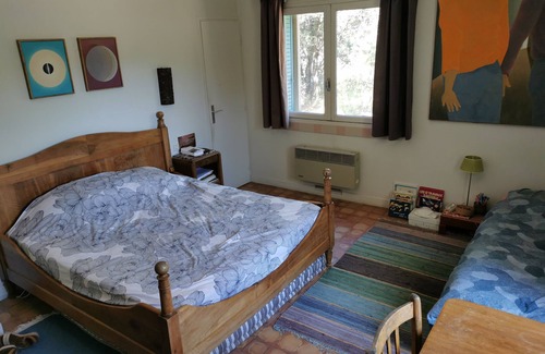 Spacious enough to house 15+ people, this beautifully designed family house includes 8 bedrooms, a well-equipped kitchen, a spacious living-room with sliding glass doors, comfortable furnishings and a piano, a laundry room, and 3 bathrooms/WC. A flat rooftop, the length of the house, is ideal for outdoor yoga. Its large terraces provide unparalleled views, outdoor eating areas, and as a backdrop, the 4,000-feet mountain of La Lance. The house is easily accessible from the road, and yet perfectly quiet, aside from the wind in the trees, birds, and chirping cicadas. A few feet from the house, nested in a clearing of oaks and pine, is a 16x26 ft pool (with a safety fence for young children) for a refreshing summer bath in the heart of nature.